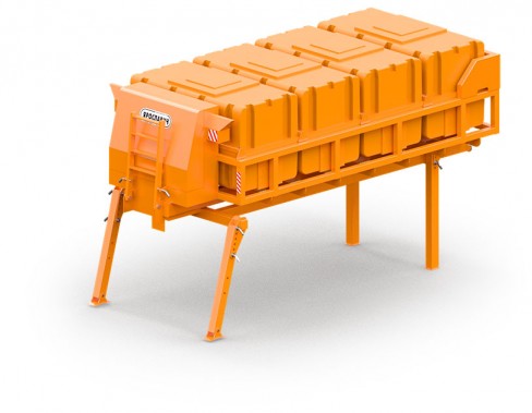• Быстросъемная конструкция позволяет легко менять емкость на пескоразбрасыватель Road Master.