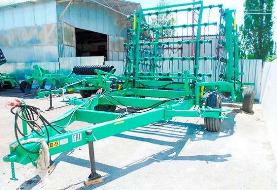 Большая длина пружинных двойных зубцов и регуляция угла наклона в пределах 45 - 90 градусов позволяет возделывание почв разной влажности и твердости с большим количеством послежатвенных остатков. Положение опорных колес регулируется в вертикальной плоскости, что позволяет компенсировать износ рабочих органов и обеспечивает большой срок их службы.