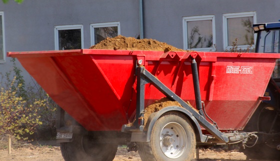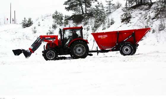 Герметичный универсальный прицеп. Позволяет перевозить множество типов грузов, от зерна до песка. Мгновенная разгрузка за счет наклона почти под прямым углом.