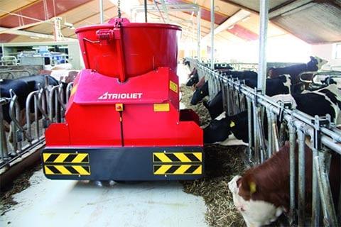 Сегодня, пожалуй, самой продвинутой и эффективной системой кормления являются автономные роботы-кормораздатчики. Семейство автономных роботов-кормораздатчиков Triomatic серии T могут быть легко встроены в существующие системы кормления. Роботы Triomatic серии T для смешивания и раздачи кормов имеют два вертикальных перемешивающих шнека, электронную систему смешивания, поперечный транспортёр для выгрузки влево и вправо, скользящий механизм отбора мощности и страховочный бампер, надежный привод с системой позиционирования и рабочий объем 3 м куб.